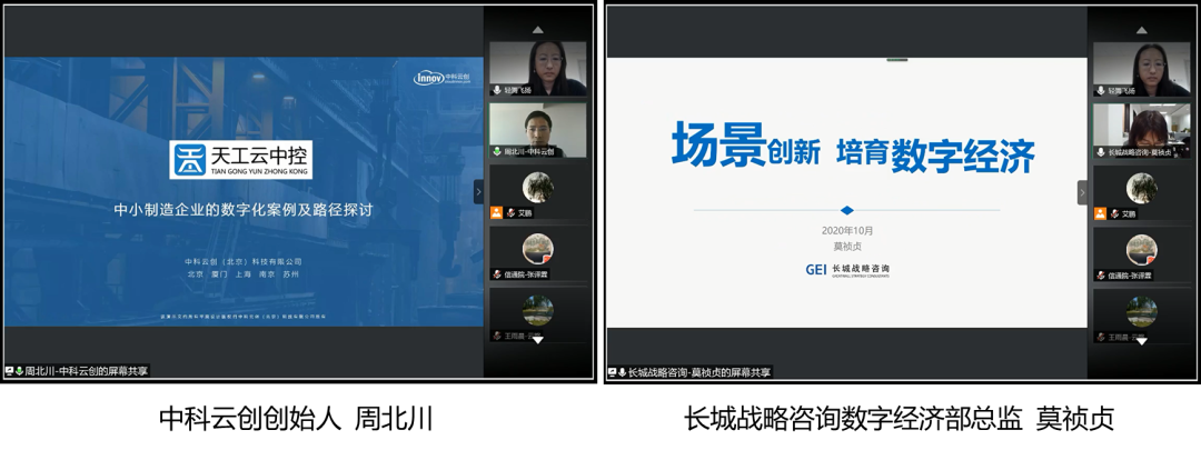 周北川带来题为《中小制造企业的数字化案例及路径探讨》的分享。工业互联网转型路径,是由制造型企业转向服务型企业,生产型企业转向方案型企业,工程型企业转向运维型企业,销售型企业转向共享型企业,同时还介绍了中科云创在工业物联网平台、智慧消安防、智慧城市和园区、设备融资风控四个解决方案。莫祯贞发表了题为《搭建新场景,培育数字经济》的分享。以“场景”定义为切入点,分享了城市、行业等经典场景和区域主动搭建场景的实践,并提出需要有能力的场景促进机构来承担桥梁作用,即要跟踪了解企业创新,又要调研挖掘城市机会,与区域联合开展场景创新工作,为高科技企业寻找好场景,对接好资源。