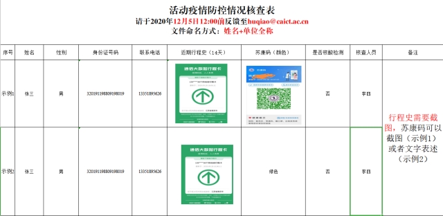 因南京市江宁区疾控要求,所有参参加联盟第十五次工作组全会的成员单位代表需要提供活动疫情防控情况核查表(行程史需要截图,苏康码可以截图或者文字表述)