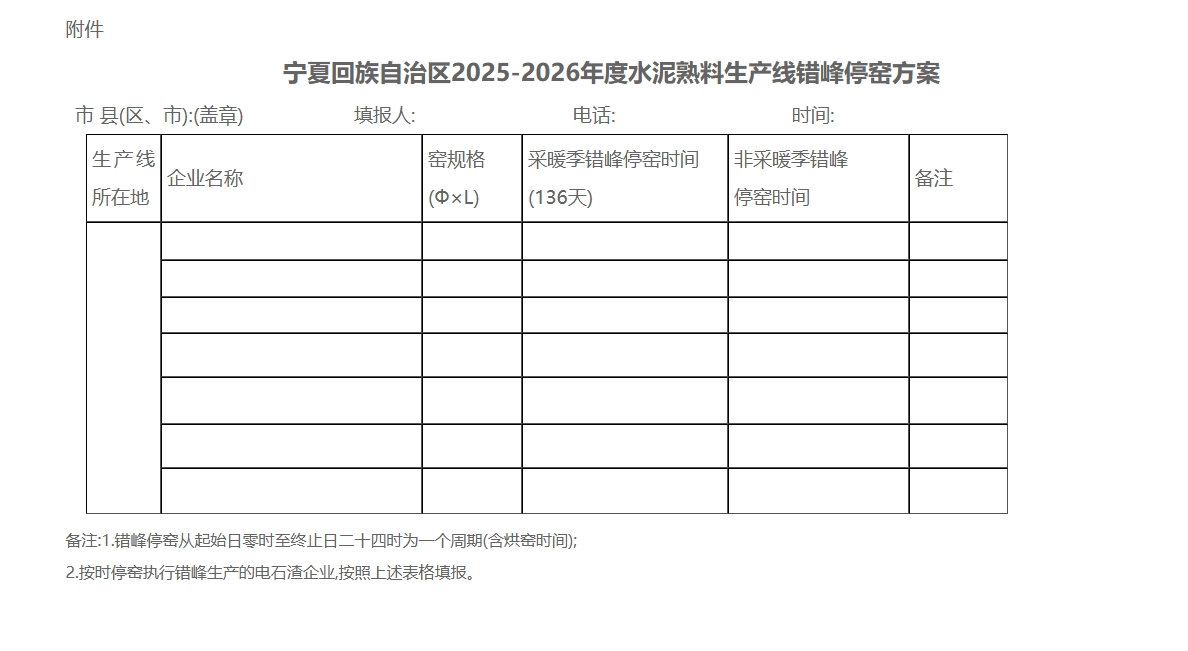 附件: 宁夏回族自治区2025-2026年度水泥熟料生产线错峰停窑方案
